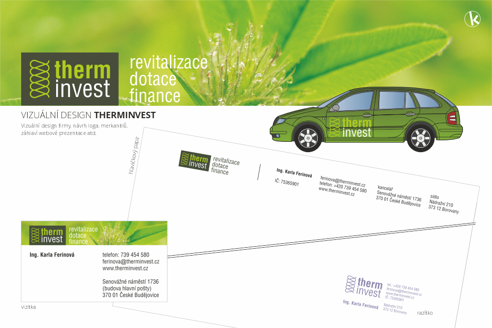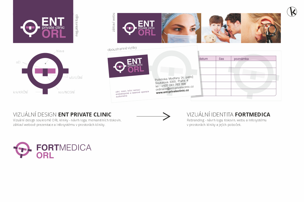 Další projekty – developerský projekt Luční jez České Budějovice, mezinárodní nákladní autodoprava MS Transport, Therminvest, logo, vizuální styl, web a informačně-orientační systém Polikliniky profesora Řeháka v Praze na Smíchově, vizuální styl ORL kliniky ENT private clinic, později rebrandované na FORTMEDICA, vizuální styl výrobce dřevostaveb ALFAHAUS