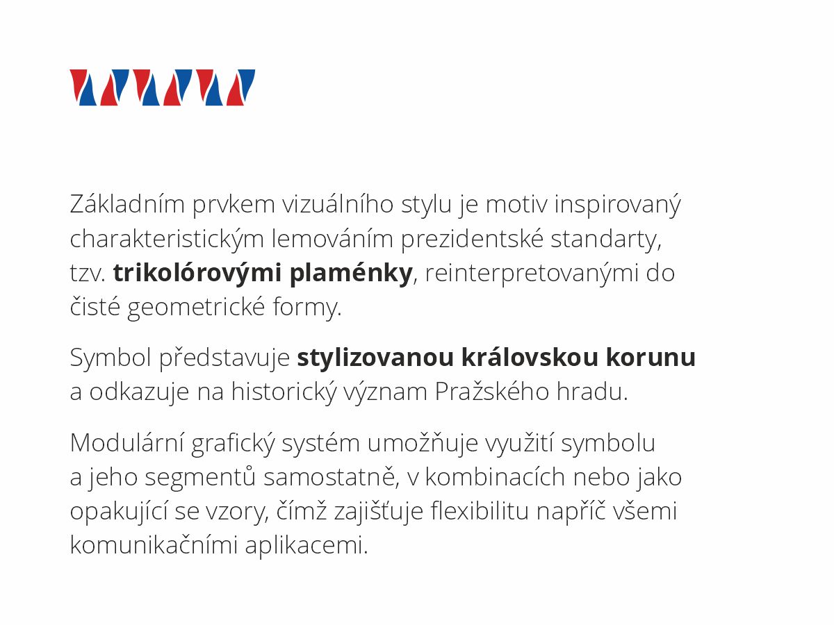 Návrh vizuální identity propojuje Pražský hrad, Kancelář prezidenta republiky a Zámek a oboru Lány do jednotného vizuálního systému.